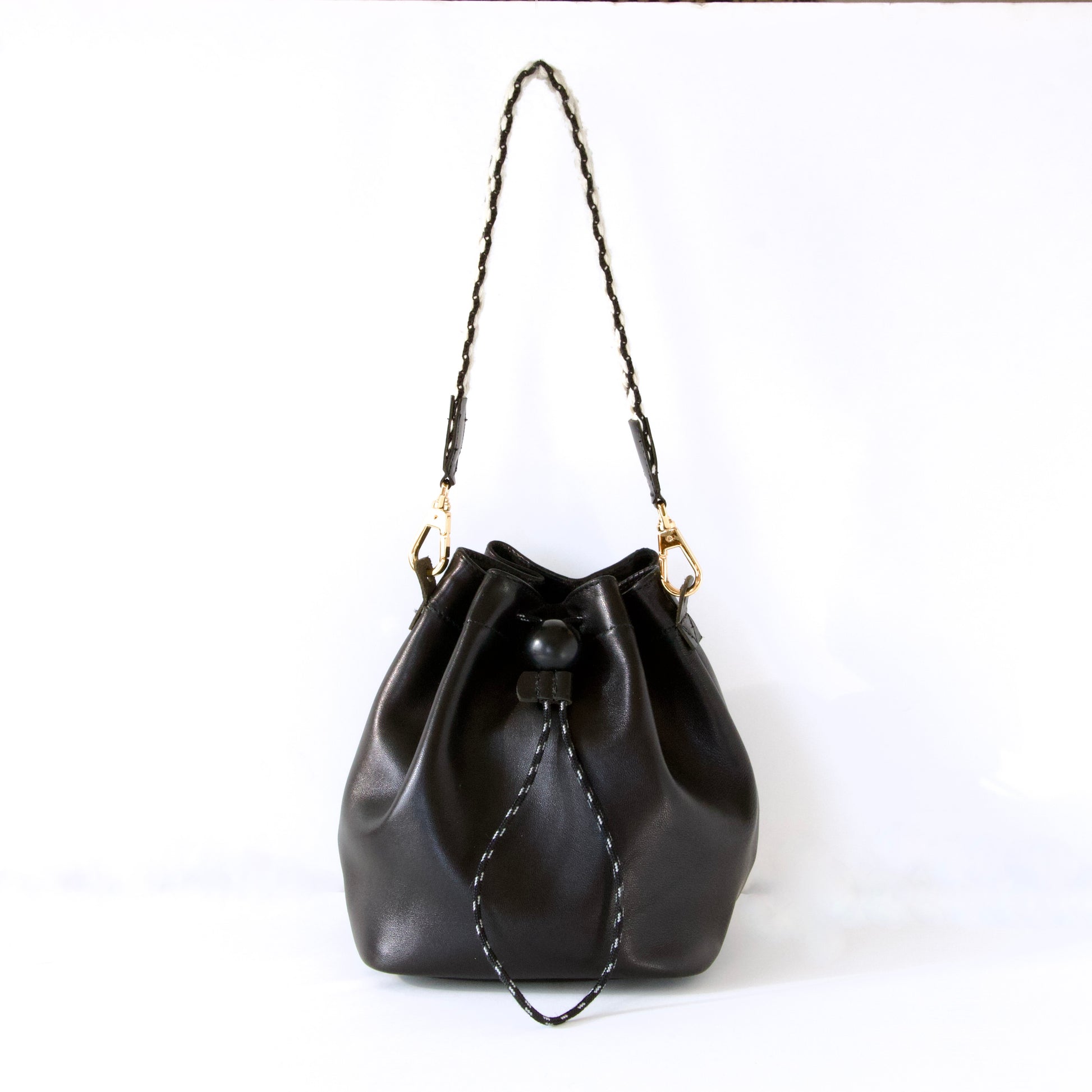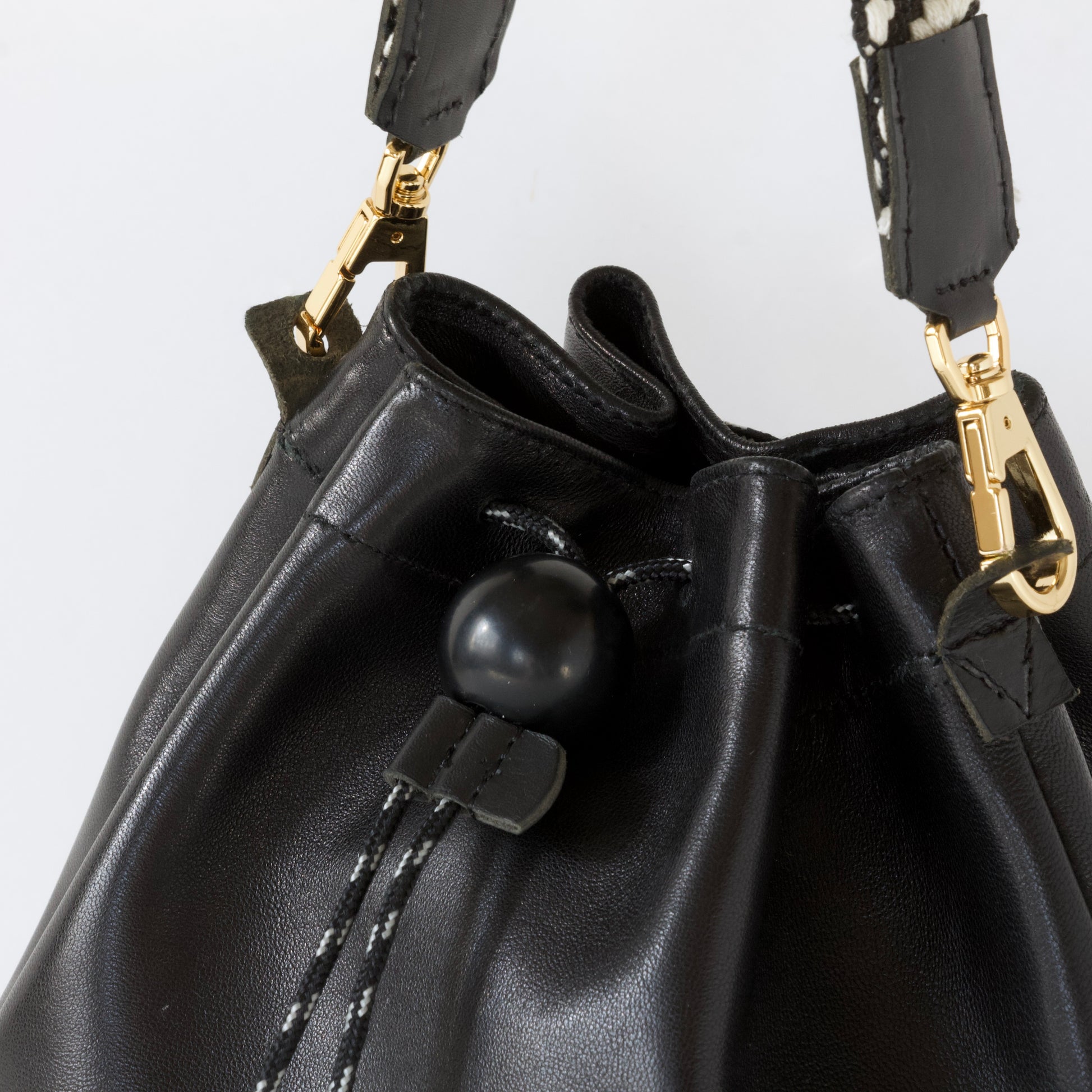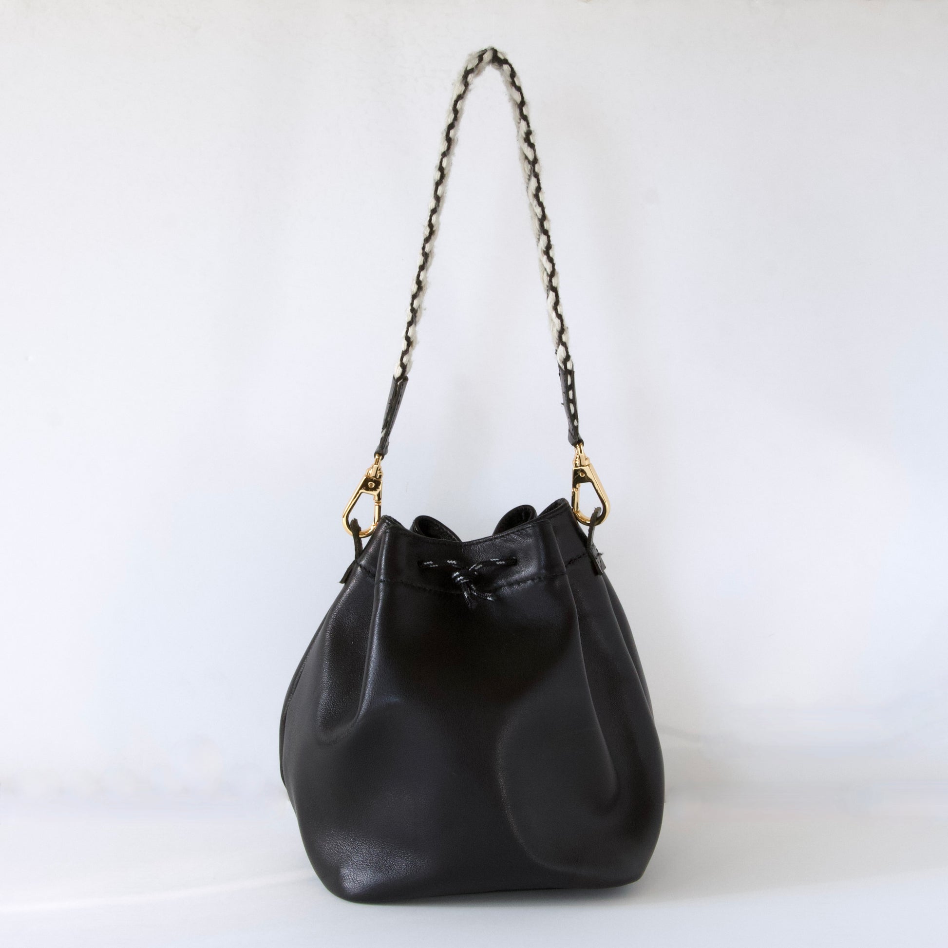 程よいしなやかさのあるラムレザー(羊の革)。ひだのある巾着バッグに適している革を選びました。