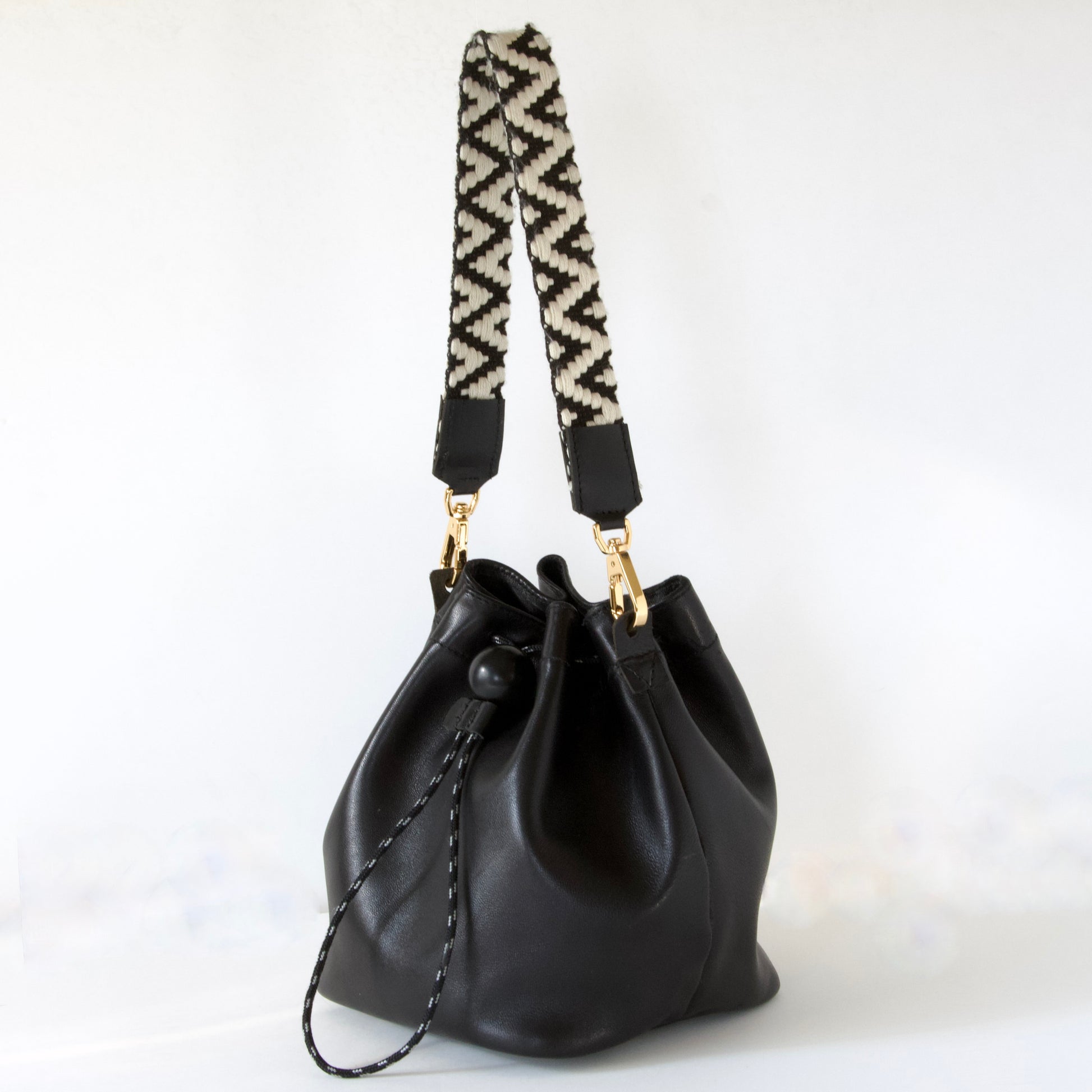 黒と白のバイカラーのコットン織りテープが素敵な「バッグハンドル」。