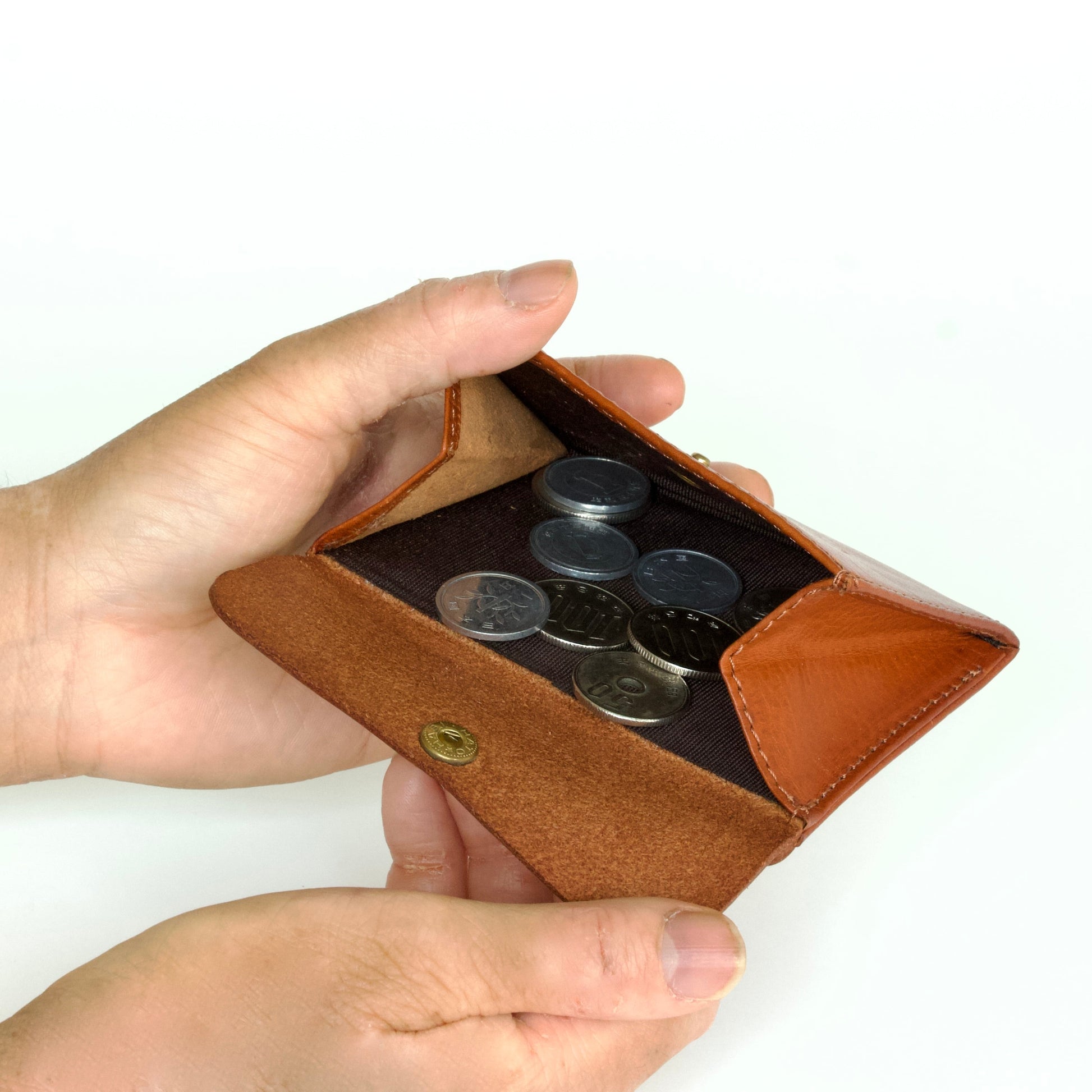 2つ折りの1万円札のサイズにあわせて、サイズの縦・横の幅をミリ単位で調整。ミニマムサイズまで落とし込みました。