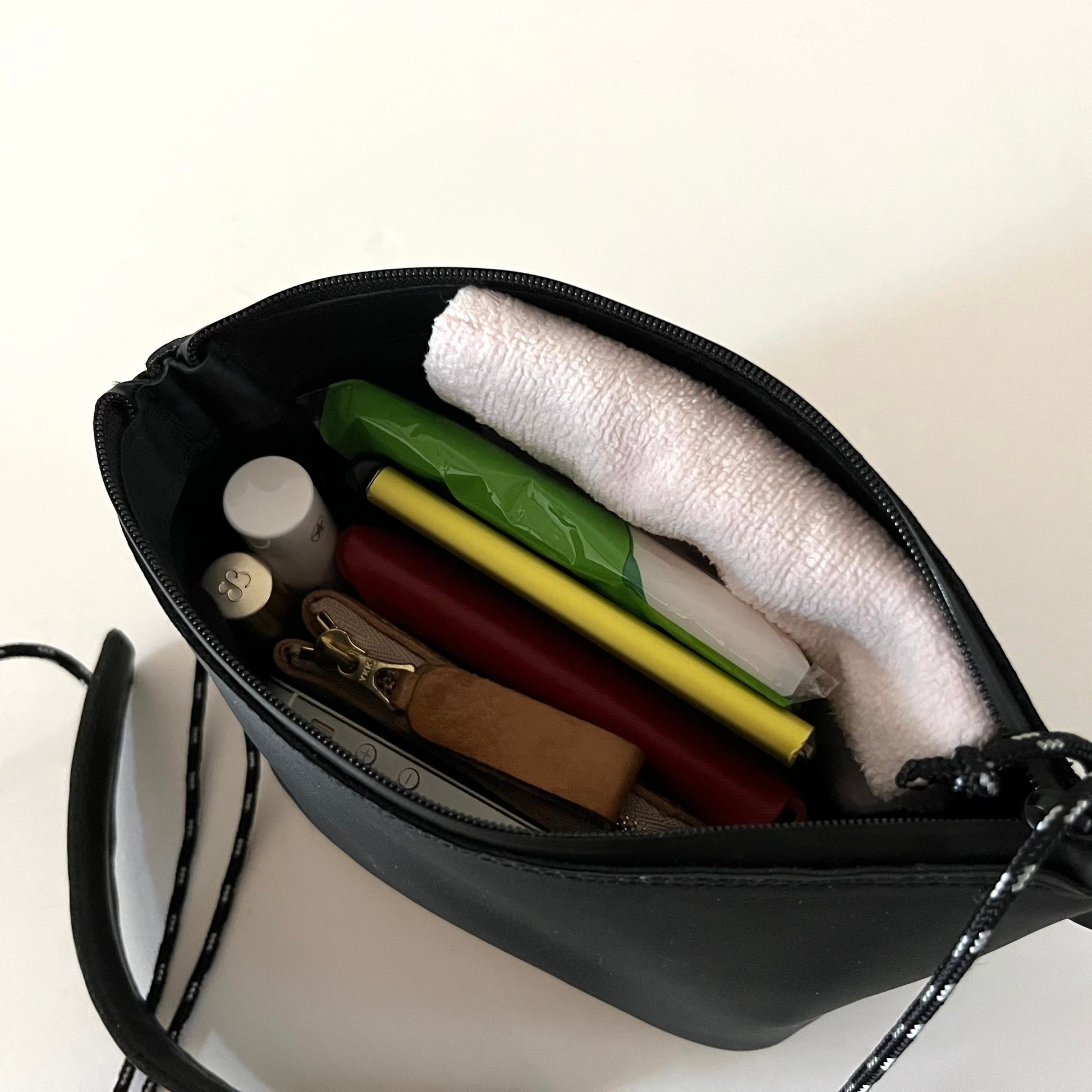 ちょっとそこまでの時は、ボトムのポケットに入れて、スマートにお出かけできます。