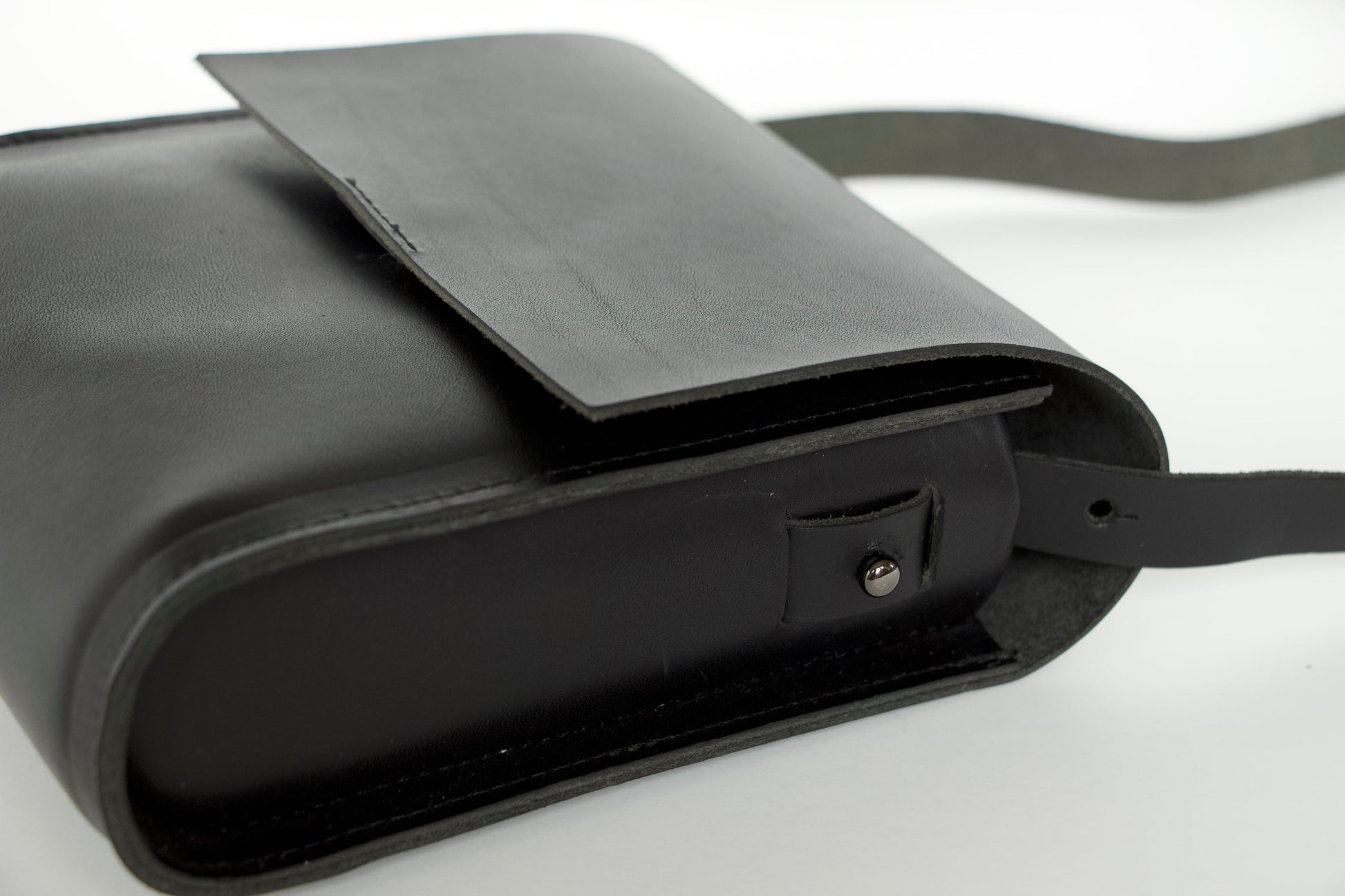 ・底は本体から繋がるラウンドマチ、かぶせ部分はバネホックで簡単に着脱が可能。
